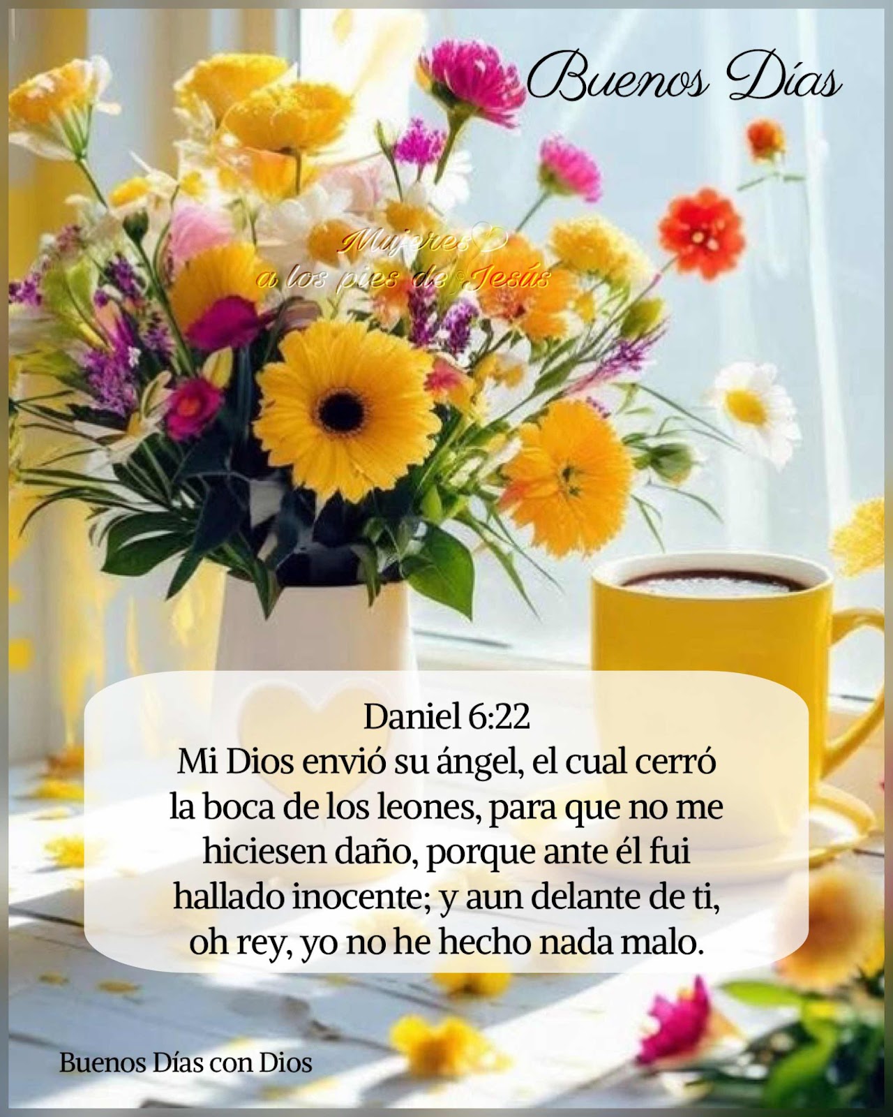 📖 Daniel 6:22 Mi Dios envió su ángel, el cual cerró la boca de los leones, para que no me hiciesen daño, porque ante él fui hallado inocente; y aun delante de ti, oh rey, yo no he hecho nada malo.